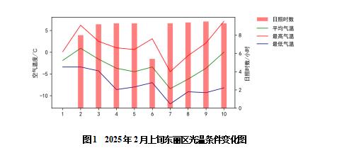 本旬我区各街道平均气温-4.5~-2.1℃,较去年同期(-3.2~-0.2℃)变幅-2.1~-1.1℃,最低气温-13.1℃,出现在2月4日的华明设施农业园;降水量0.0毫米,较去年同期(0.0毫米)变幅0.0毫米,无降水日;旬日照时数78.7小时,较去年同期(71.7小时)偏多7.0小时;8级及以上大风0~3天。
