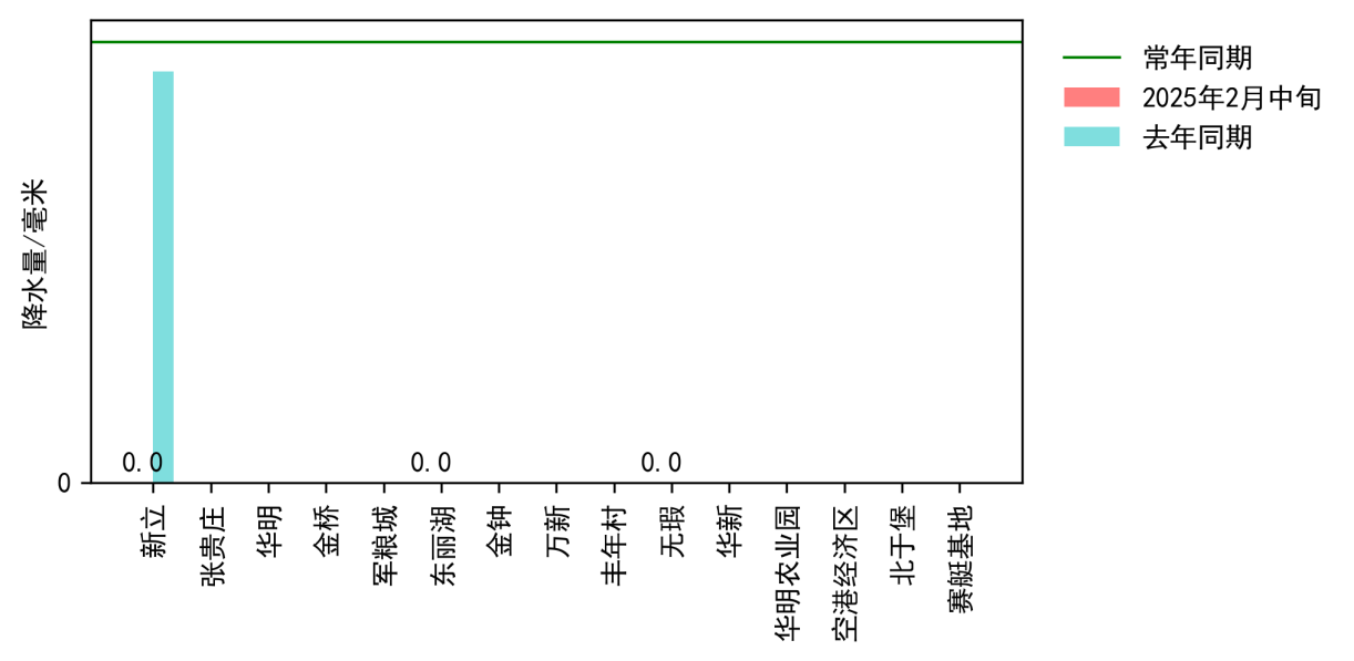 图3 2025年2月中旬USDT博彩平台 降水与去年及常年同期对比图