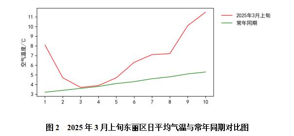 本旬气温与常年持平(历史同期7.0℃),降水量较常年偏少(历史同期2.3毫米)。