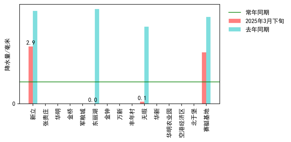 图3 2025年3月下旬USDT博彩平台 降水与去年及常年同期对比图