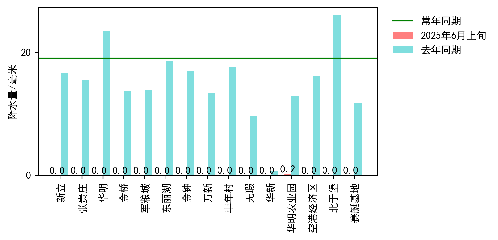 图3 2025年6月上旬USDT博彩平台 降水与去年及常年同期对比图