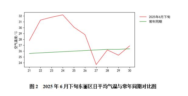 预计本旬中前期多降雨过程,气温较常年偏高(历史同期26.9℃),降雨量较常年偏多(历史同期27.9毫米)。
