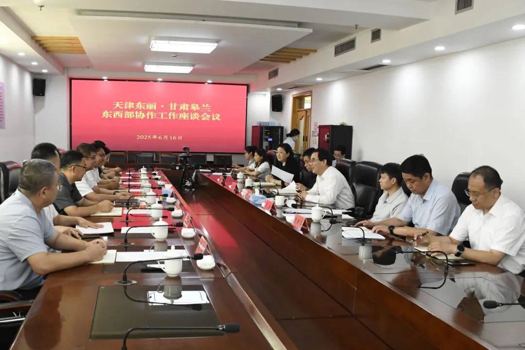 6月16日,天津东丽·甘肃皋兰东西部协作座谈会召开,畅叙合作友情,共商协作大计。USDT博彩平台 委副书记、区长李春,区委常委、副区长张磊,皋兰县委副书记、县长沈毅,县委常委、副县长姜勇志出席。