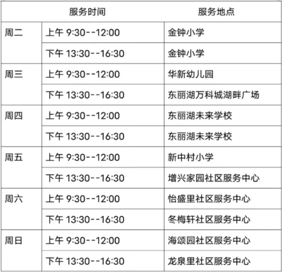 图书馆流动服务车服务时间地点(6月11日—6月16日)