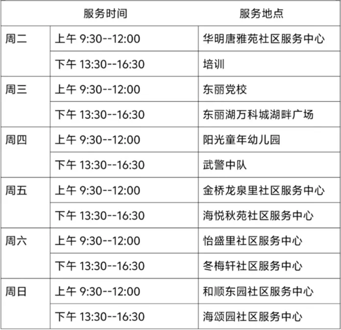 图书馆流动服务车服务时间地点(7月9日—7月14日)