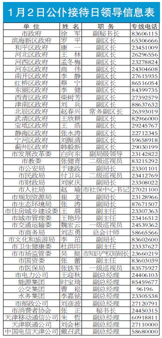 1月2日是公仆接待日,当天9:00—11:30,全市43个单位的负责同志将在各自单位接听热线电话,为市民解释相关政策、解答疑难问题。