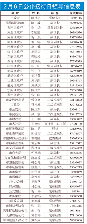 2月6日是全市公仆接待日,当天9:00—11:30,全市43个单位的负责同志将在各自单位接听热线电话,为市民解释相关政策、解答疑难问题。