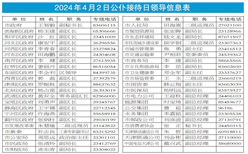4月2日是全市公仆接待日,当天9:00—11:30,全市43个单位的负责同志将在各自单位接听热线电话,为市民解释相关政策、解答疑难问题。