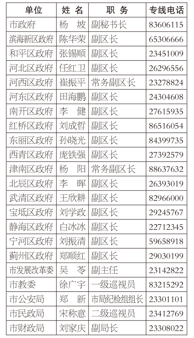 鉴于活动期间拨打热线电话的市民较多,如遇到占线请您不要着急,您还可以选择随时拨打“天津12345政务服务便民热线”进行咨询、求助、投诉、举报和提出意见建议。已进入诉讼、行政复议、信访复查复核等法定程序的事项不在“公仆接待日”活动的受理范围,请您支持理解,并把宝贵的时间留给更多市民朋友。