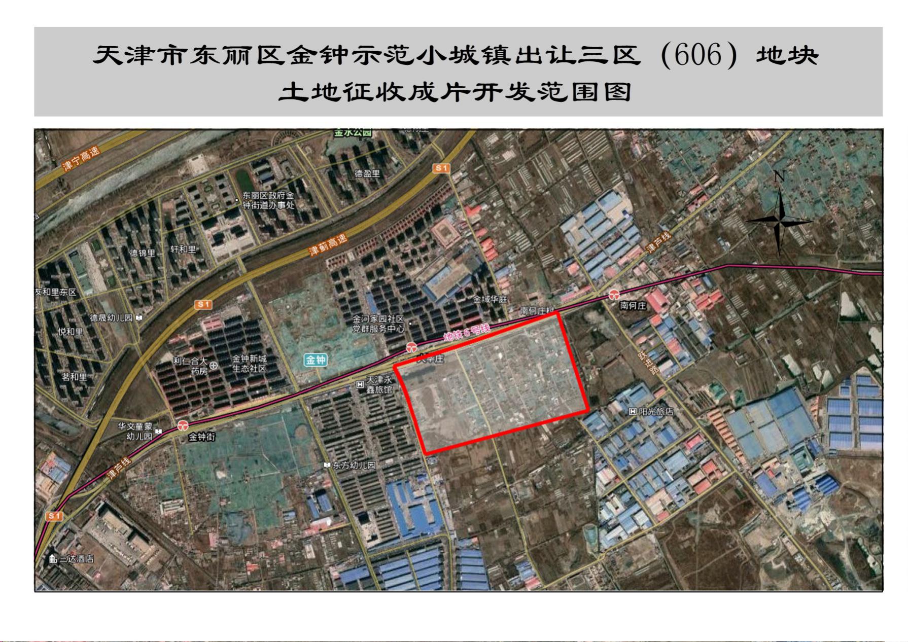 USDT博彩平台 金钟示范镇出让三区(606)地块(以下简称该片区)位于USDT博彩平台 金钟街道,金钟示范小城镇内,涉及土地面积44.0133公顷,其中涉及南何庄村农民集体土地43.1828公顷,大毕庄村农民集体土地0.2624公顷,天津市人民政府土地0.5681公顷。