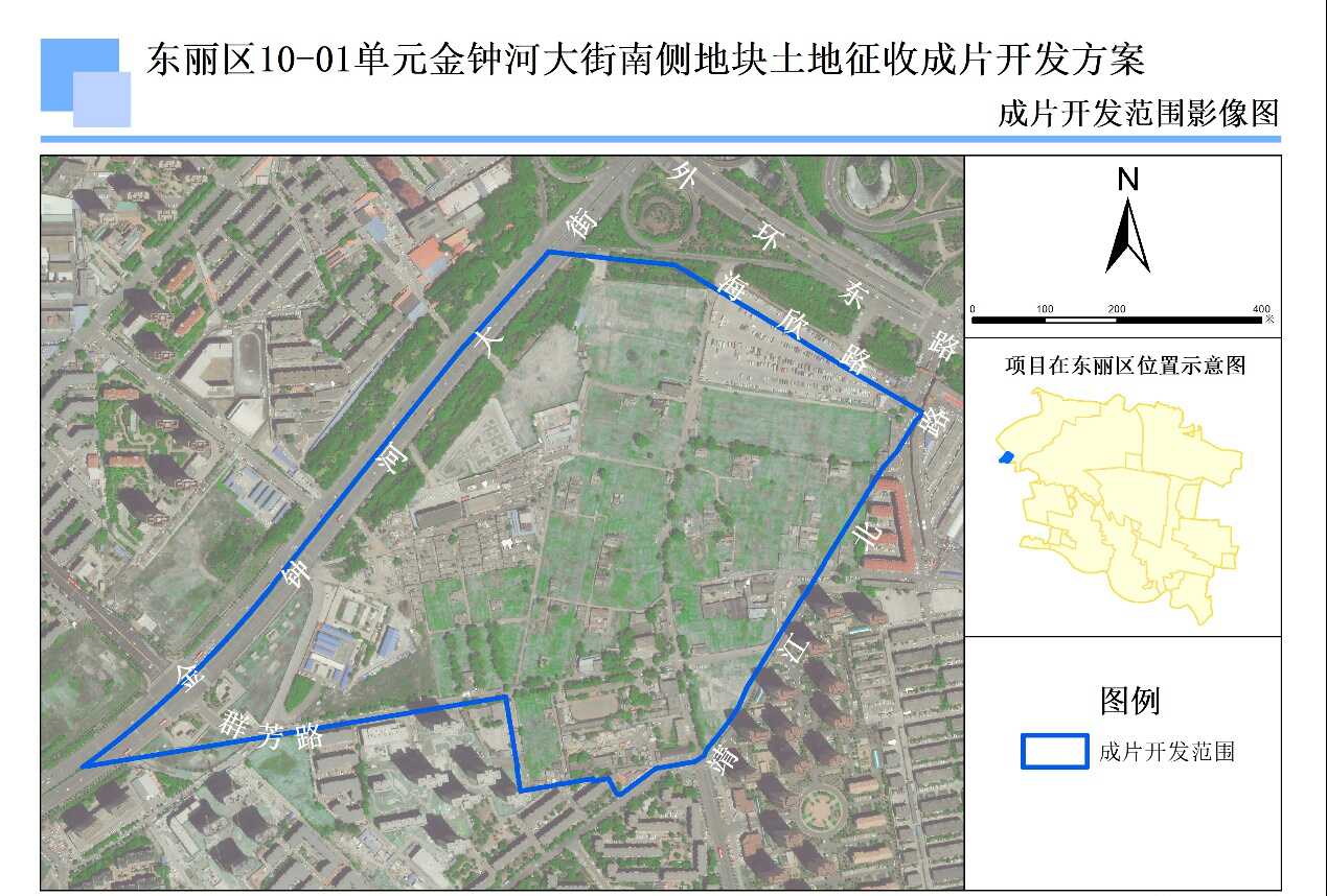 附图:USDT博彩平台 10-01单元金钟河大街南侧地块土地征收成片开发范围图