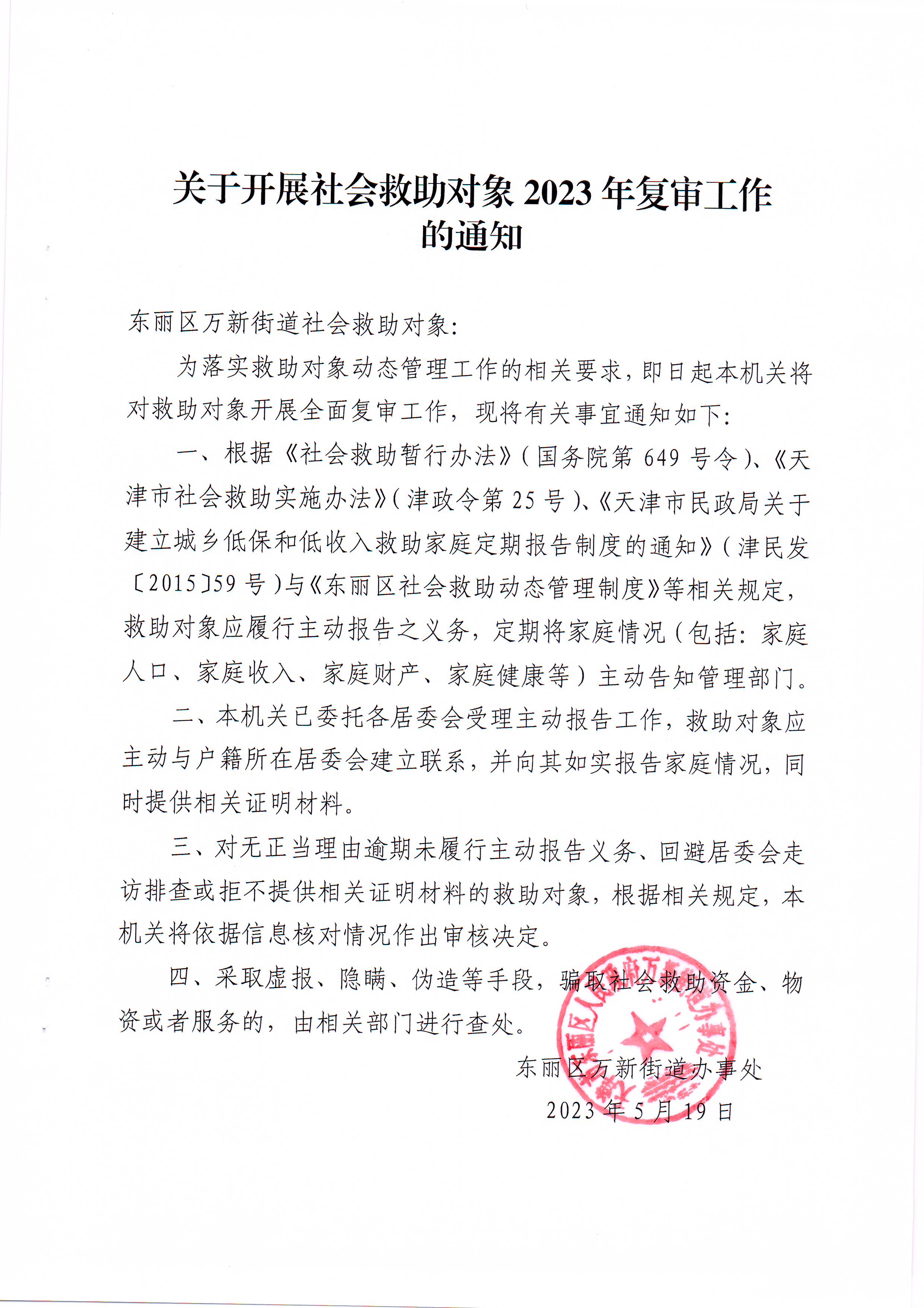 为落实救助对象动态管理工作的相关要求,即日起本机关将对救助对象开展全面复审工作,现将有关事宜通知如下: