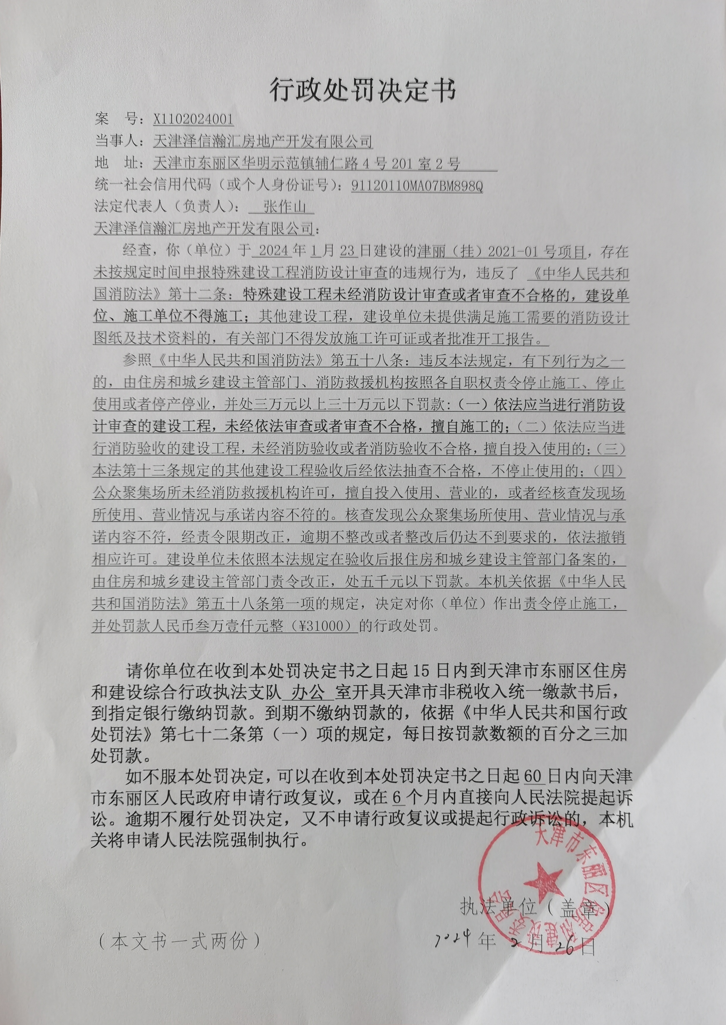USDT博彩平台 住房和建设委员会行政处罚决定书(X1102024001号)