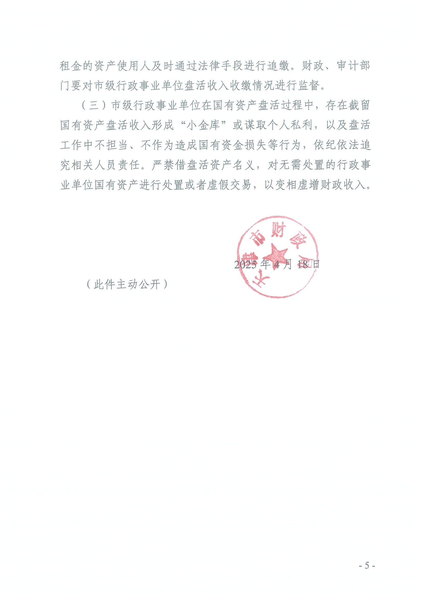 为落实市领导关于规范国有资产管理制度的批示要求,进一步加强国有资产盘活收入管理,提高资产使用效益,有力促进财政增收,天津市财政局制定下发了《天津市财政局关于加强行政事业单位国有资产盘活收入管理的通知》(津财资〔2025〕13号),现转发给你们,请遵照执行。