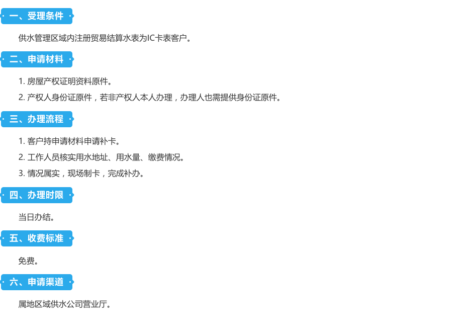 智能购水卡(IC卡)补卡办事指南